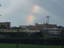 On September 7 (Labor Day) very light rain made a big rainbow.