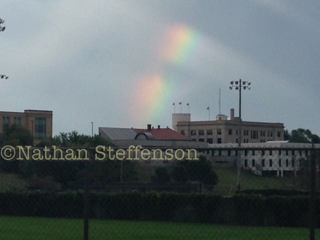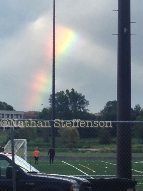 Submitted by Nathan Steffenson on Sat, 09/12/2015 - 2:01am On September 7 (Labor Day) very light rain made a big rainbow. photos: